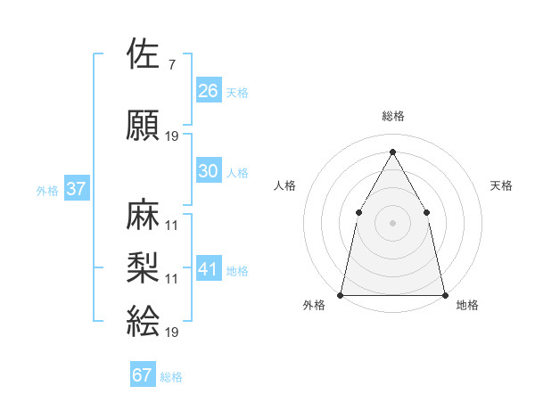 佐願 麻梨絵さんを姓名の画数から五運を鑑定