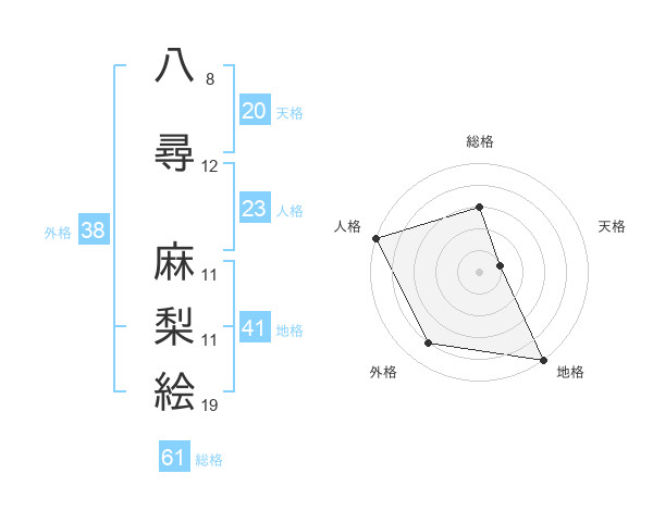 八尋 麻梨絵さんの総格は61画の3点!