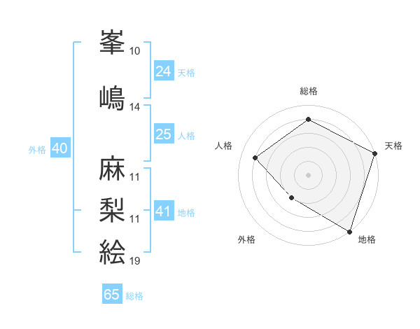 峯嶋 麻梨絵さんの地格は41画の5点!