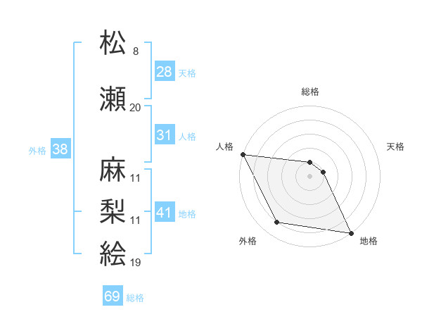 松瀬 麻梨絵さんの外格は38画の4点!