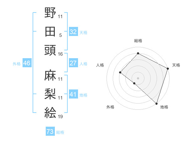 野田頭 麻梨絵さんの総格は73画の4点!