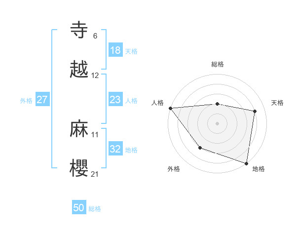 寺越 麻櫻さんを姓名の画数から五運を鑑定
