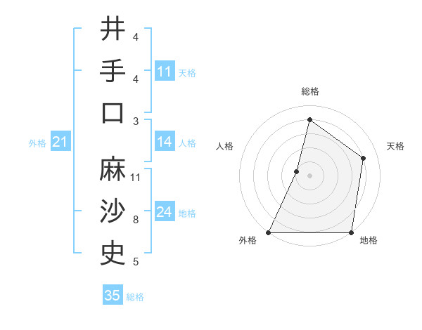 井手口 麻沙史さんの総格は35画の4点!
