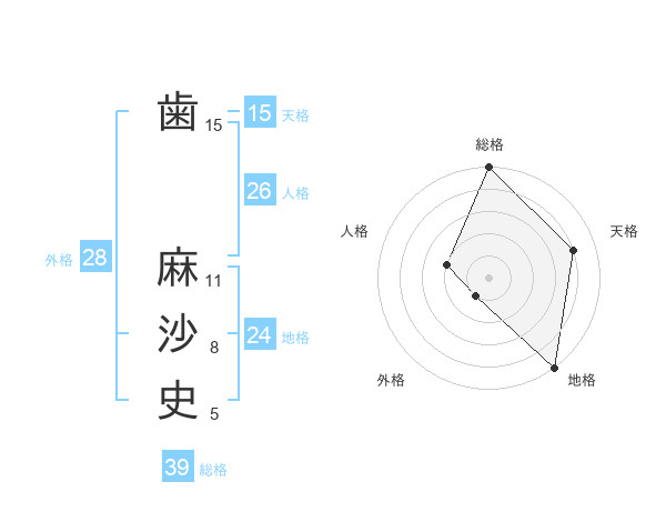 歯 麻沙史さんの天格は15画の4点!