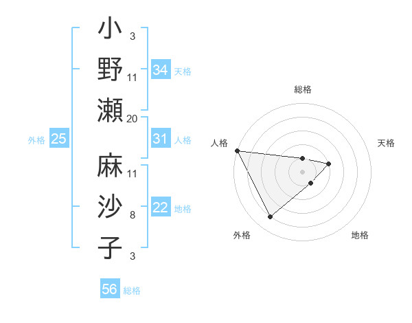 小野瀬 麻沙子さんを姓名の画数から五運を鑑定