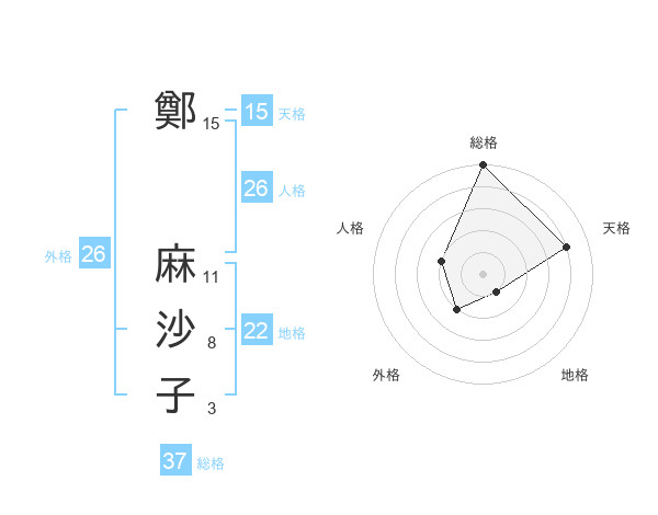 鄭 麻沙子さんを姓名の画数から五運を鑑定