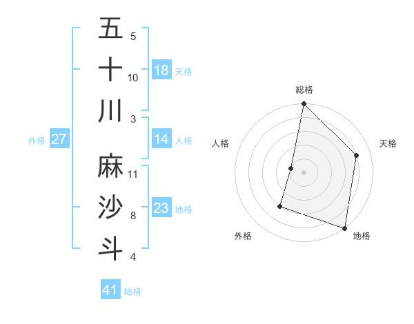 五十川 麻沙斗さんを姓名の画数から五運を鑑定