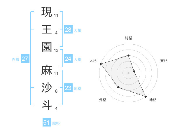 現王園 麻沙斗さんを姓名の画数から五運を鑑定