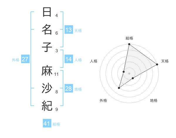 日名子 麻沙紀さんを姓名の画数から五運を鑑定