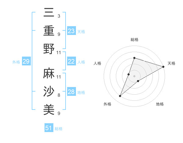 三重野 麻沙美さんを姓名の画数から五運を鑑定