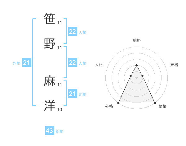 笹野 麻洋さんを姓名の画数から五運を鑑定