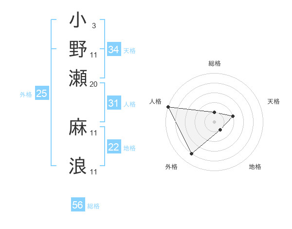 小野瀬 麻浪さんを姓名の画数から五運を鑑定