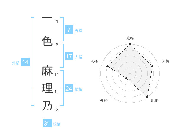 一色 麻理乃さんの総格は31画の5点!