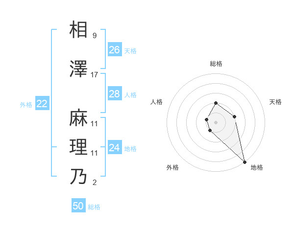相澤 麻理乃さんを姓名の画数から五運を鑑定