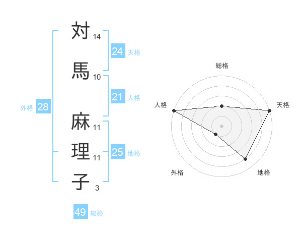 対馬 麻理子さんを姓名の画数から五運を鑑定