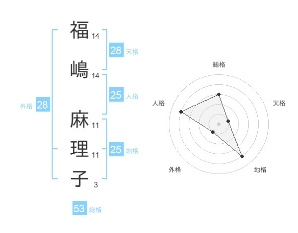 福嶋 麻理子さんの天格は28画の1点!