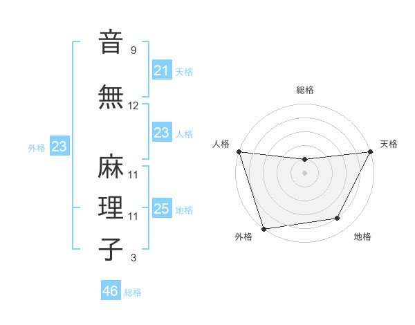 音無 麻理子さんの外格は23画の5点!