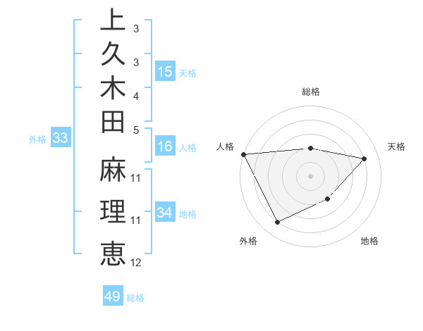 上久木田 麻理恵さんを姓名の画数から五運を鑑定