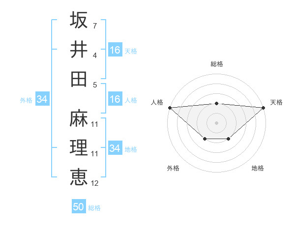 坂井田 麻理恵さんを姓名の画数から五運を鑑定