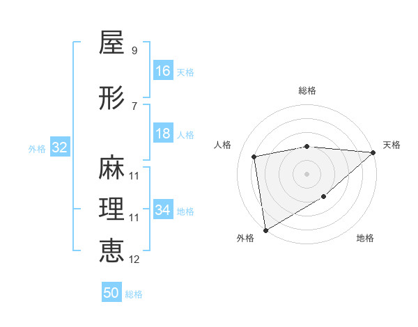 屋形 麻理恵さんの天格は16画の5点!