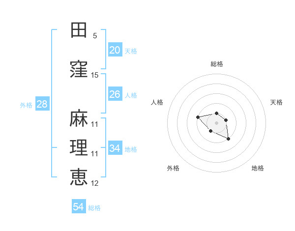 田窪 麻理恵さんの天格は20画の1点!