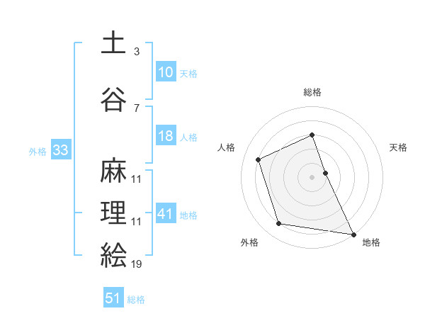 土谷 麻理絵さんを姓名の画数から五運を鑑定