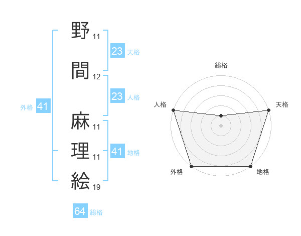 野間 麻理絵さんを姓名の画数から五運を鑑定