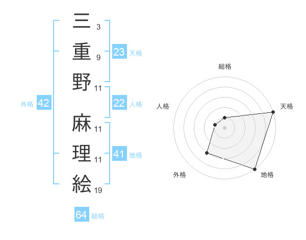 三重野 麻理絵さんの天格は23画の5点