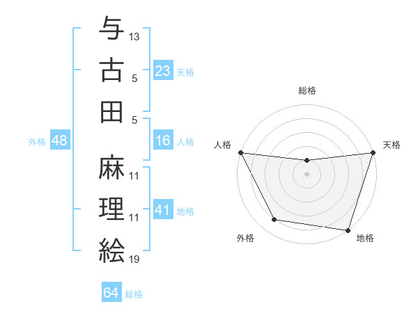 与古田 麻理絵さんの天格は23画の5点!