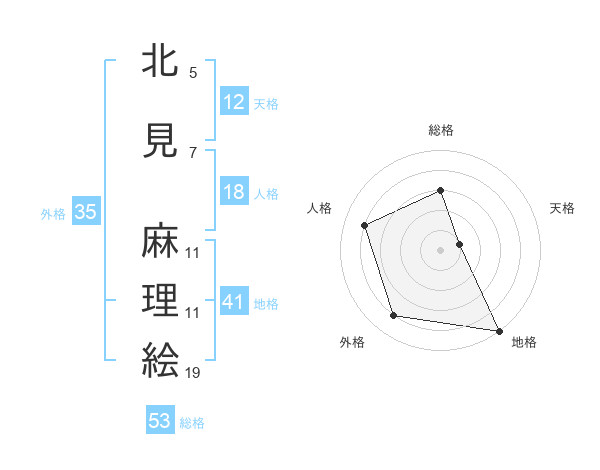 北見 麻理絵さんの総格は53画の3点!