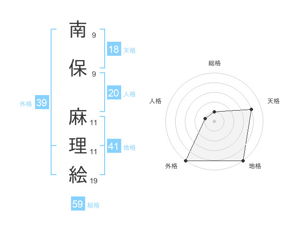 南保 麻理絵さんの外格は39画の5点!