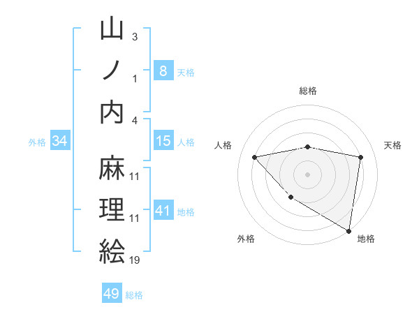 山ノ内 麻理絵さんを姓名の画数から五運を鑑定
