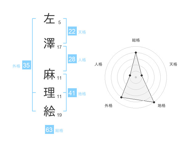 左澤 麻理絵さんを姓名の画数から五運を鑑定