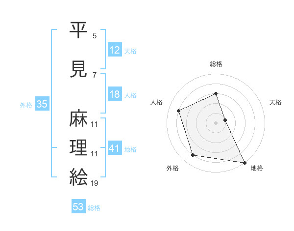 平見 麻理絵さんを姓名の画数から五運を鑑定