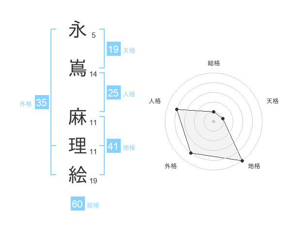 永嶌 麻理絵さんを姓名の画数から五運を鑑定