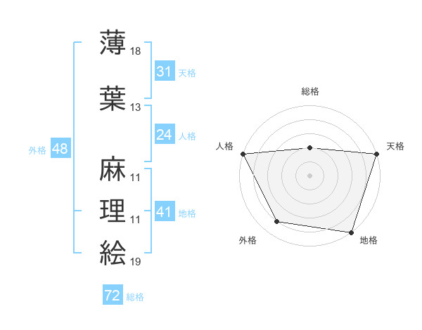 薄葉 麻理絵さんを姓名の画数から五運を鑑定