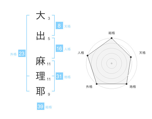 大出 麻理耶さんの総格は39画の5点!