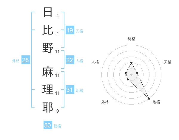 日比野 麻理耶さんの総格は50画の2点!