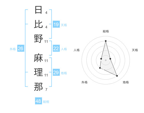 日比野 麻理那さんを姓名の画数から五運を鑑定