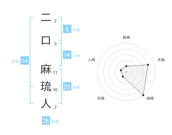 二口 麻琉人さんを姓名の画数から五運を鑑定