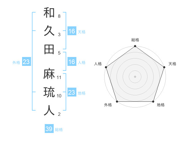 和久田 麻琉人さんを姓名の画数から五運を鑑定