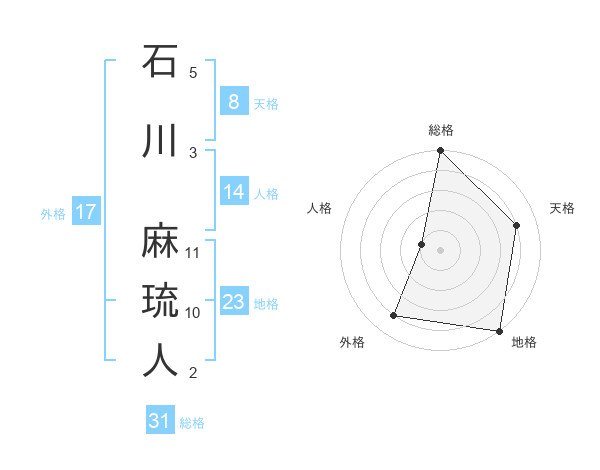 石川 麻琉人さんを姓名の画数から五運を鑑定