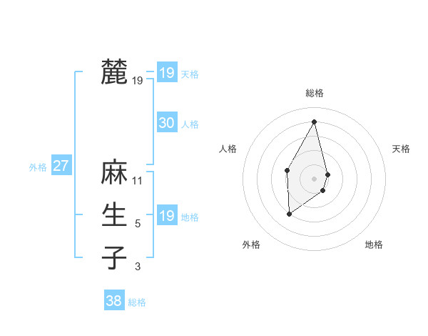 麓 麻生子さんの総格は38画の4点!