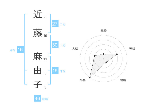 近藤 麻由子さんの総格は46画の1点!