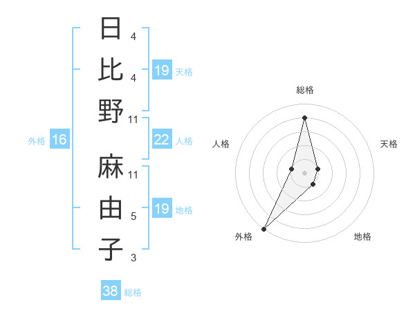 日比野 麻由子さんを姓名の画数から五運を鑑定