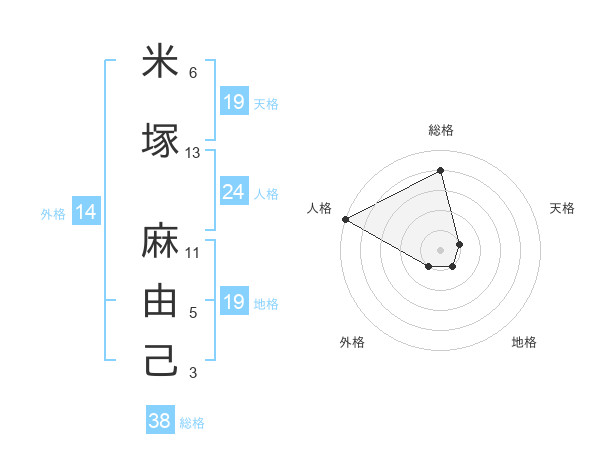 米塚 麻由己さんの総格は38画の4点!