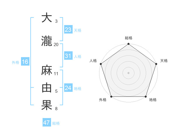 大瀧 麻由果さんを姓名の画数から五運を鑑定