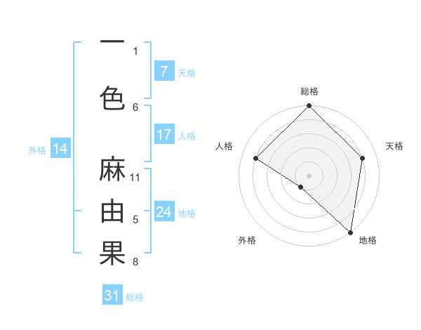 一色 麻由果さんを姓名の画数から五運を鑑定