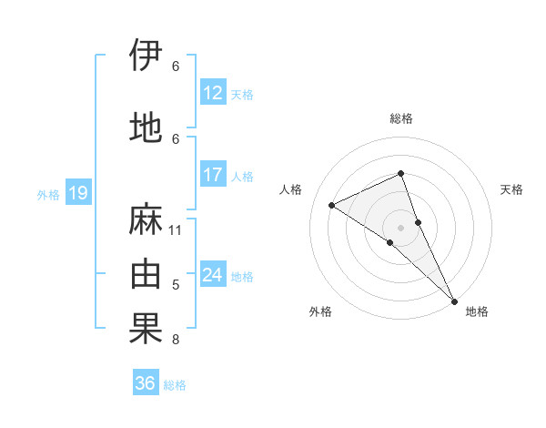 伊地 麻由果さんの総格は36画の3点!