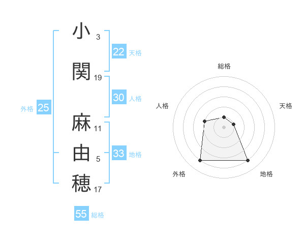 小関 麻由穂さんの総格は55画の1点!